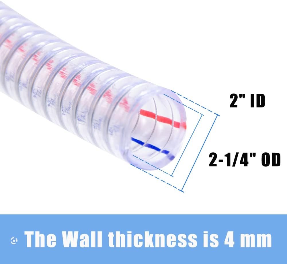 2 Inch ID x 2-1/4 Inch OD Heavy-Duty Steel Wire Suction PVC Flexible Tubing High Pressure UV Chemical Resistant Thick Vinyl Hose Tube, 3.3 FT