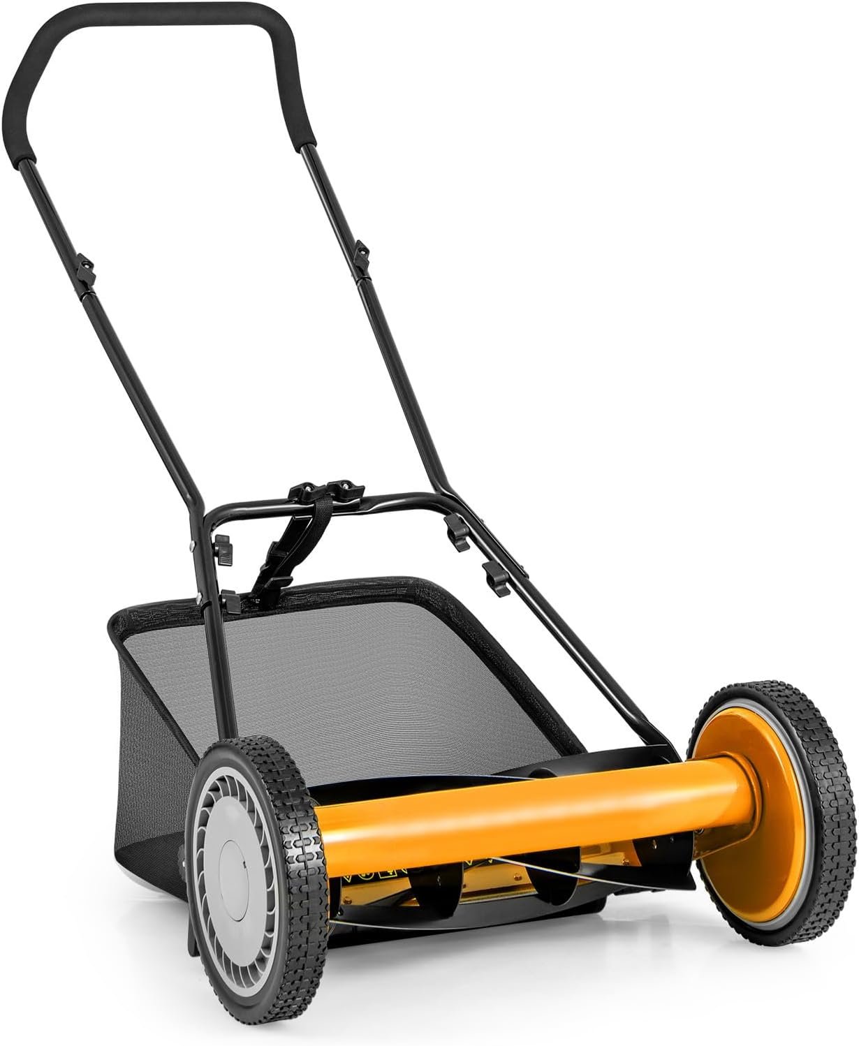 • Manual Reel Lawn Mower: Operate as a 100% manual walk-behind lawnmower with no motor, offering zero emissions and ultra-quiet performance for peaceful care—foam-padded handles ensure a comfortable grip, reducing hand strain for enjoyable use.